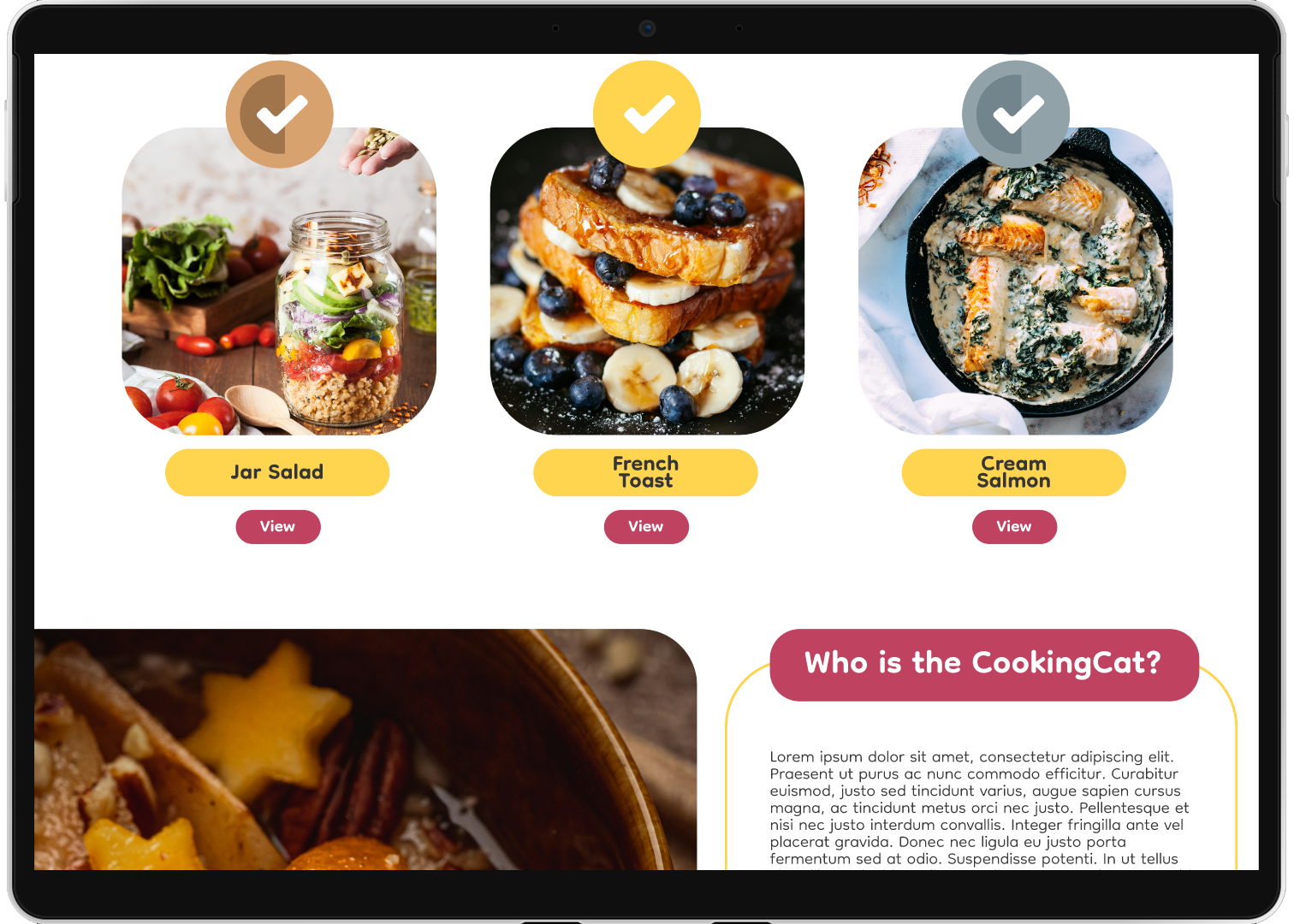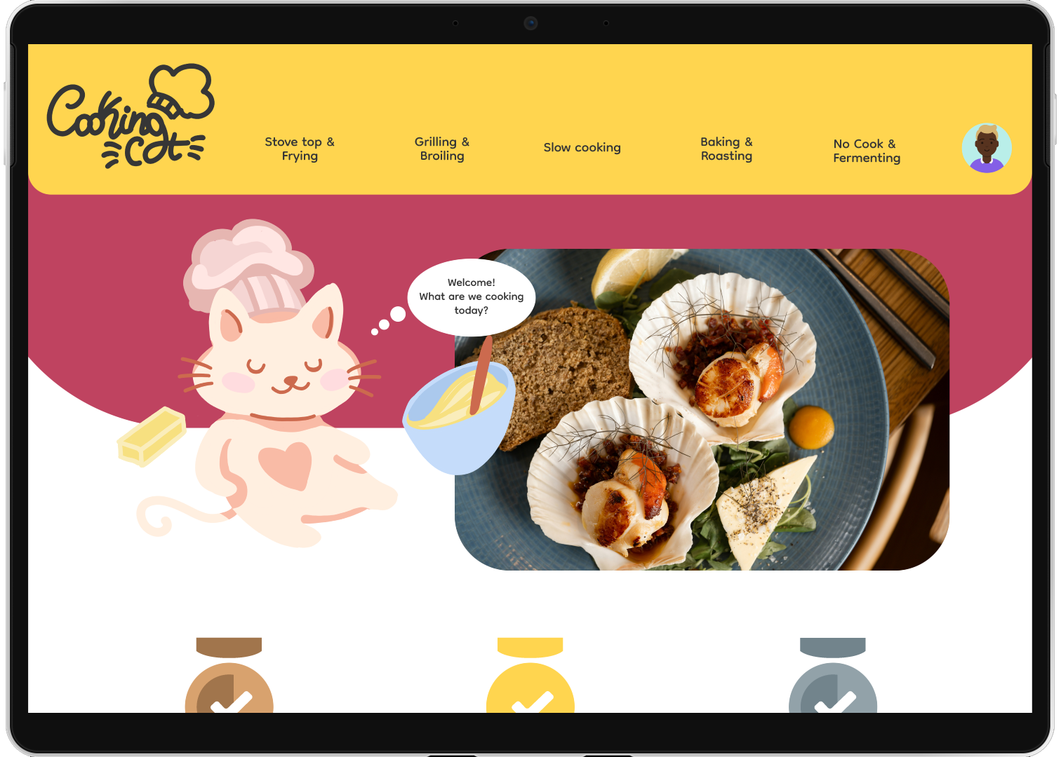 The CookingCat website will give the chance to learn, share and discover simple and healthy cooking recipes in all the methods of cooking which will affect young adults living away from home and any soul with a passion for cooking by providing them with the space to build cooking skills, prepare nutritious meals, and stay motivated through a fun cat themed website.